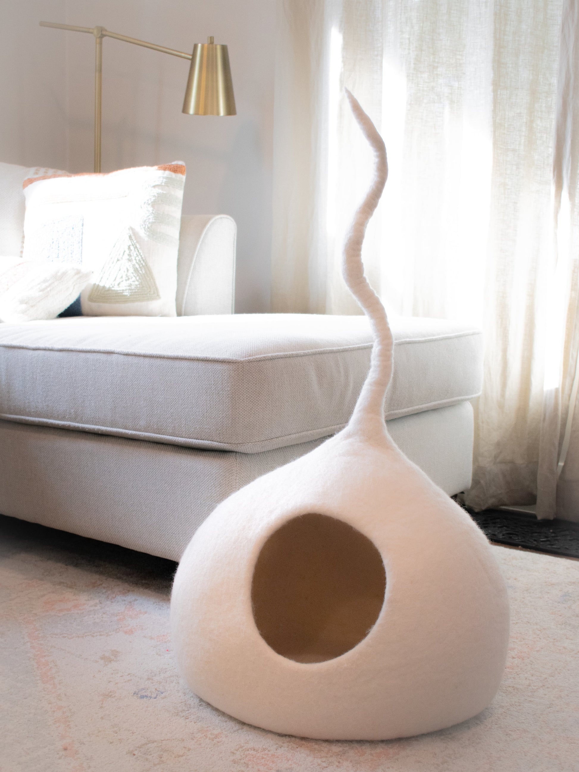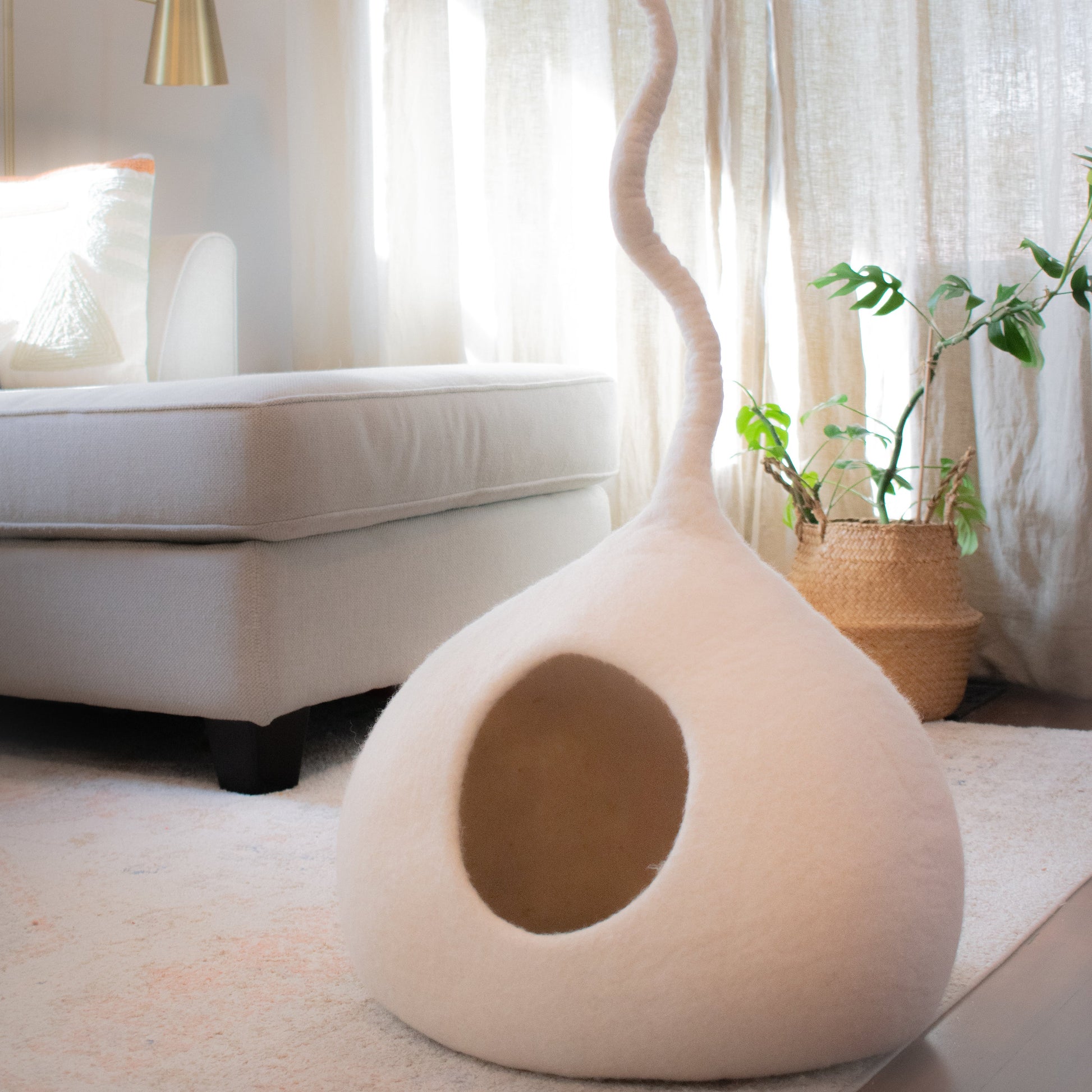 • Artisanal Quality: Each cat cave is handcrafted from the finest felted wool, offering a premium softness that your cat will adore. It's a piece of pet furniture that stands the test of time.